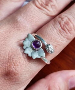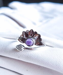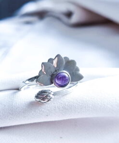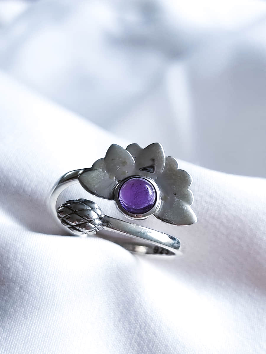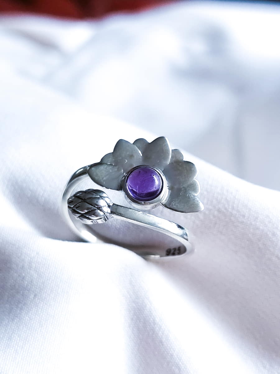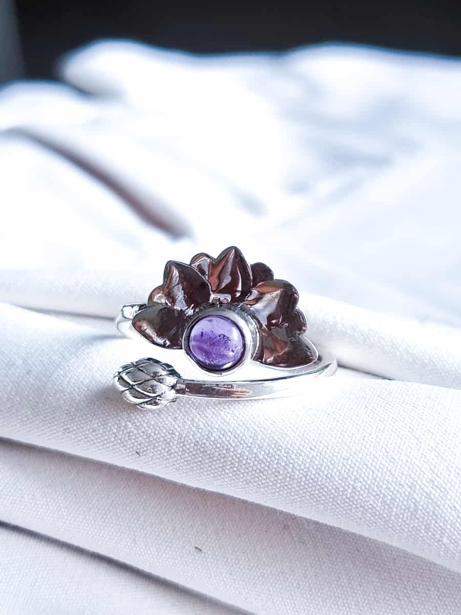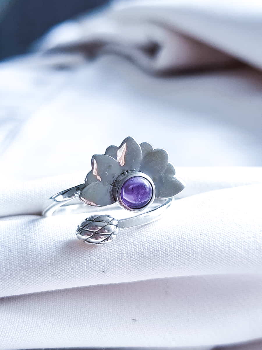Anillo Flor de Loto Espiritual ajustable Amatista
