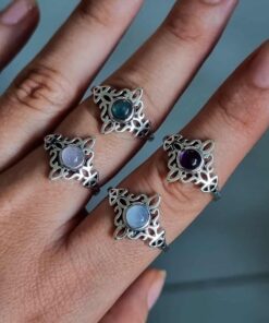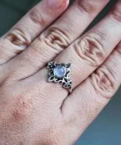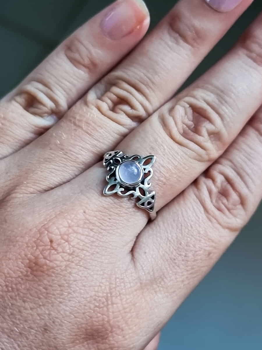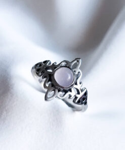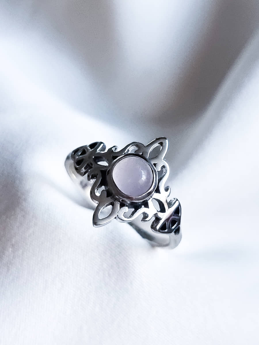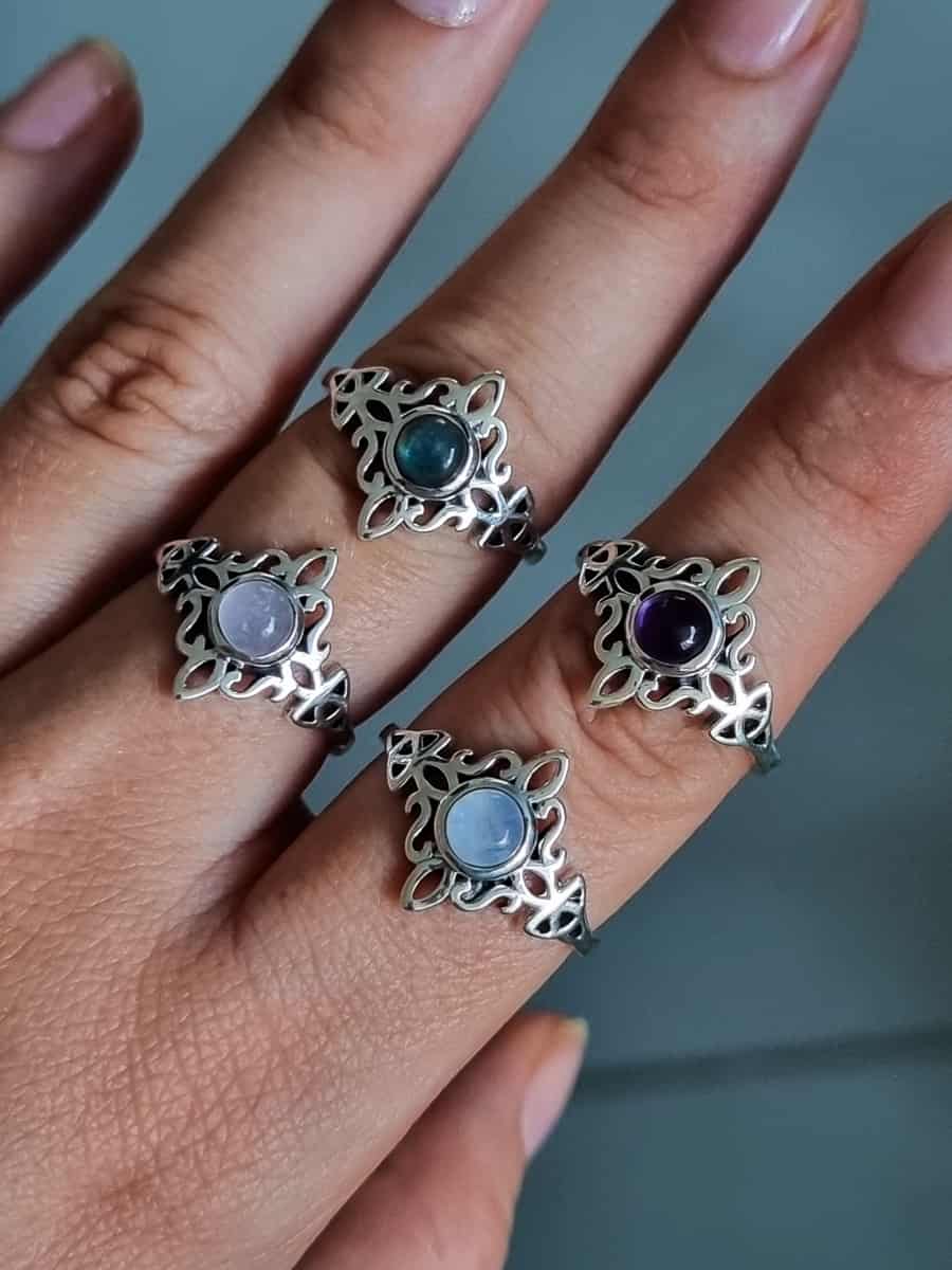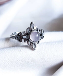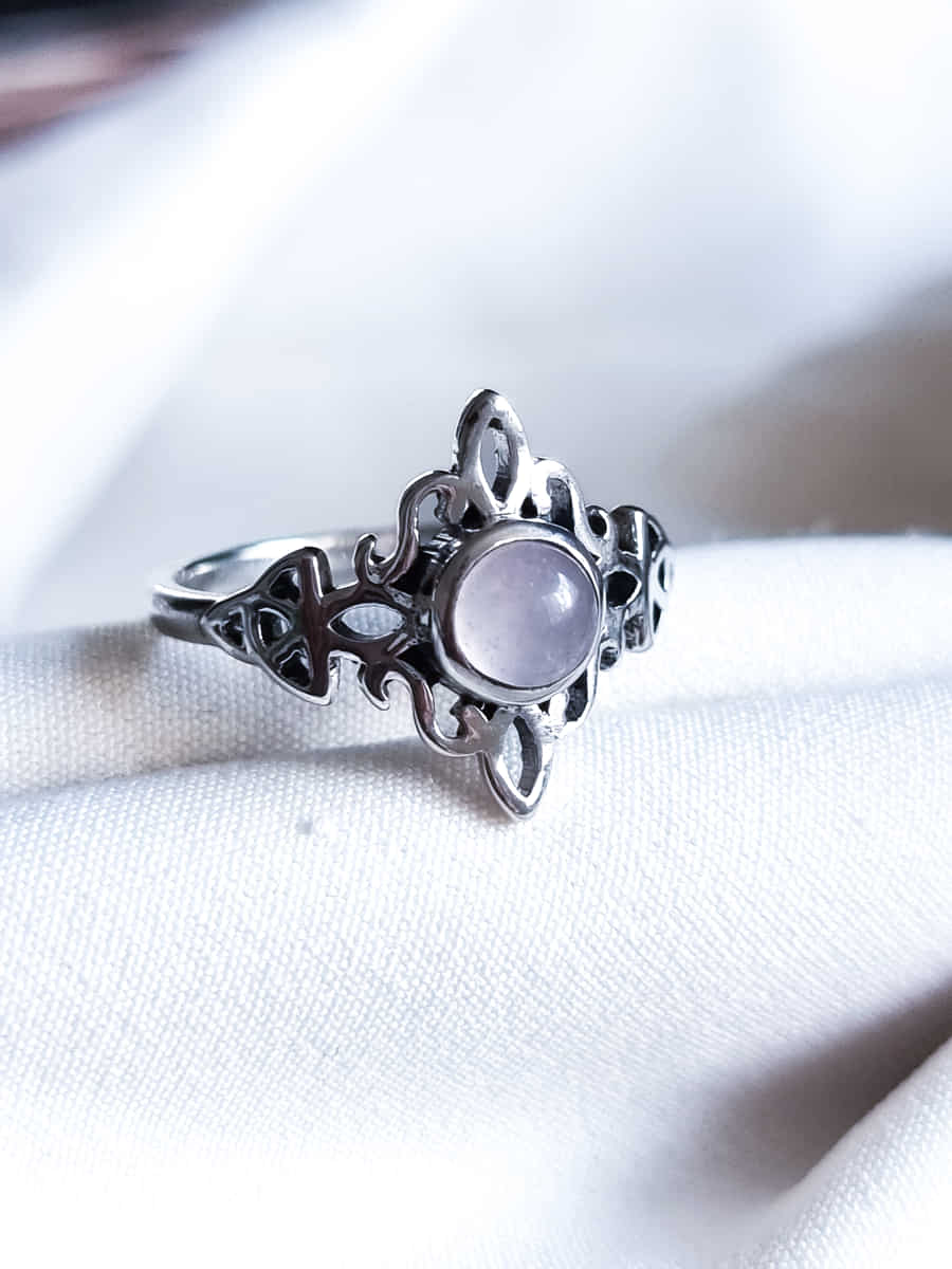 Anillo Nudo de Brujas y Triqueta Cuarzo Rosa