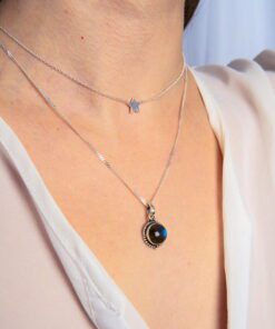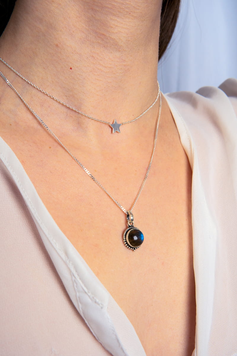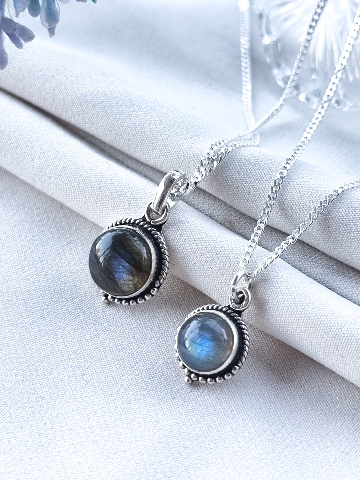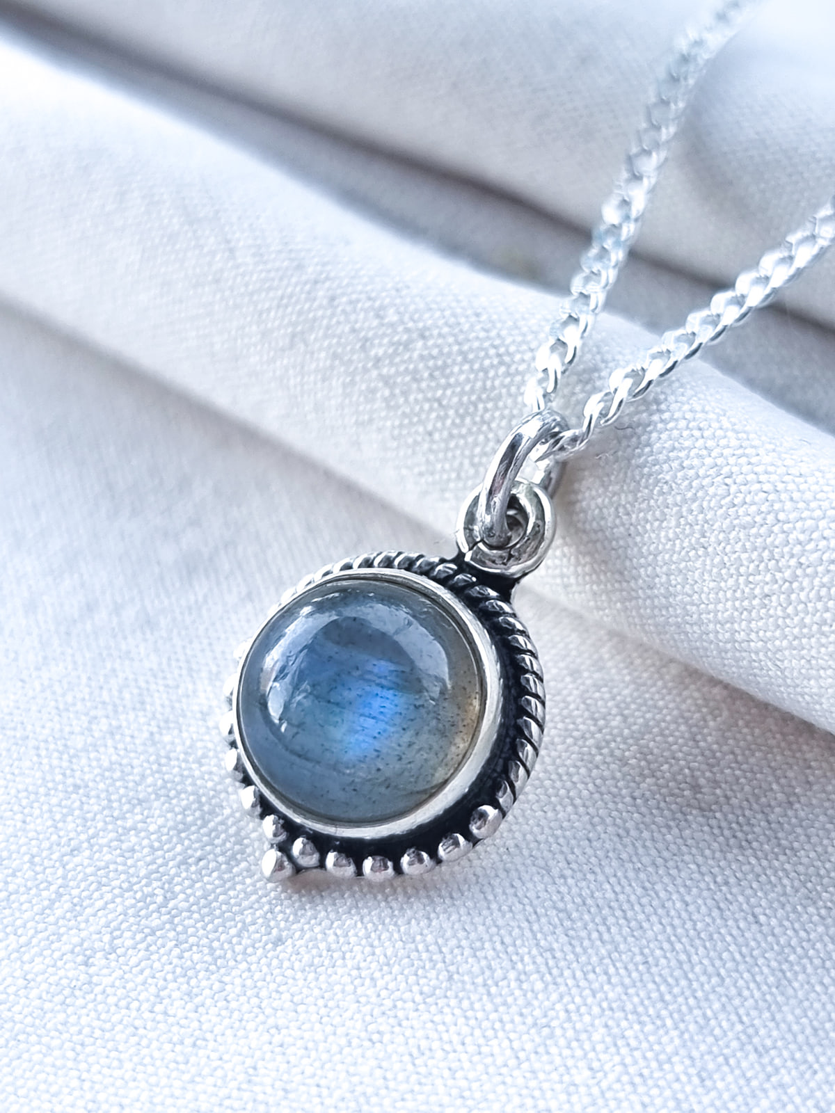 La labradorita es una piedra altamente mística y protectora, desvía fuerzas no deseadas del aura y forma una barrera ante las energías negativas, disipa miedos e inseguridades brindando equilibrio. Fortalece la fe en el yo y la confianza en el universo. Calma la mente hiperactiva y energetiza la imaginación.