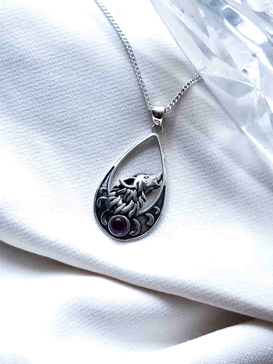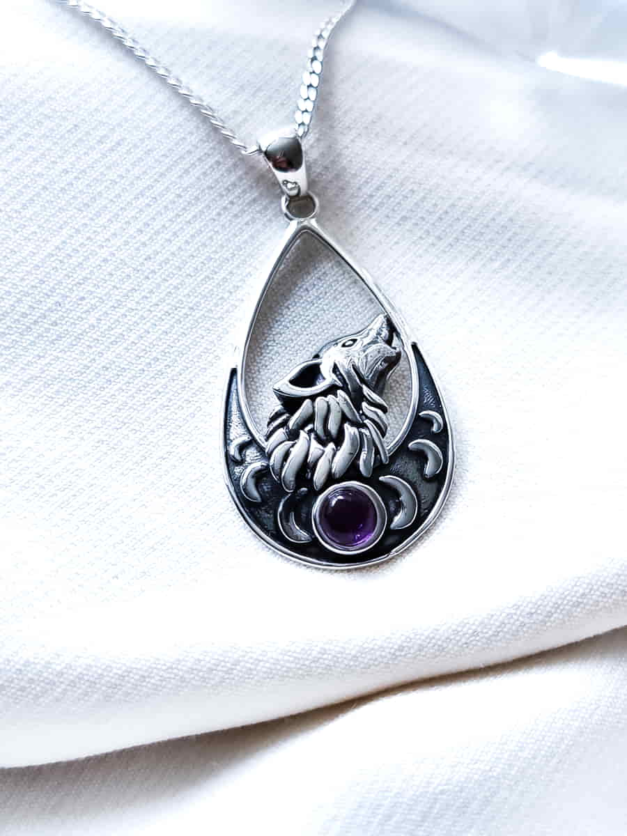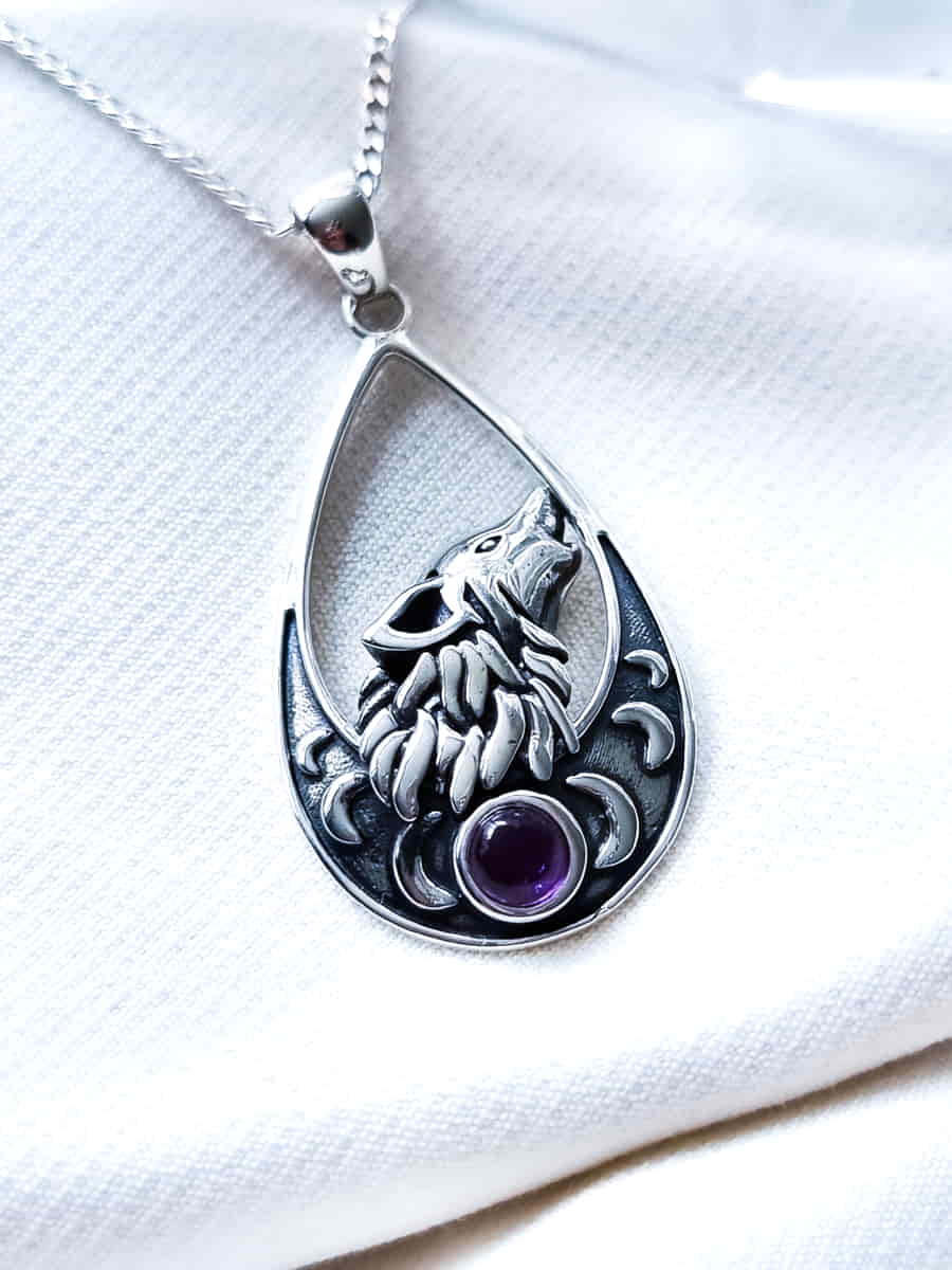 Colgante Lobo y Fases Lunares Amatista