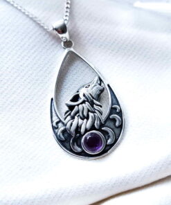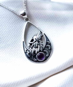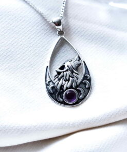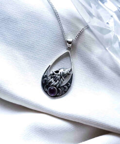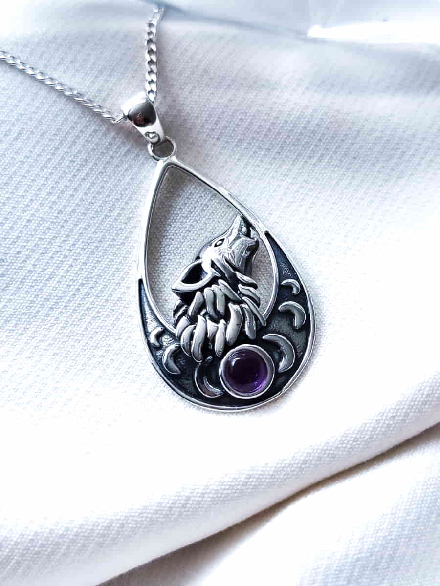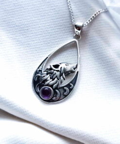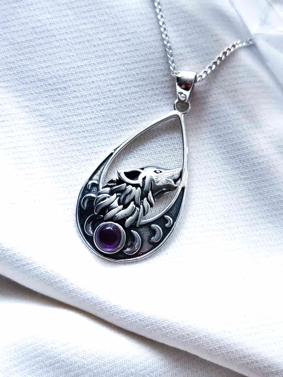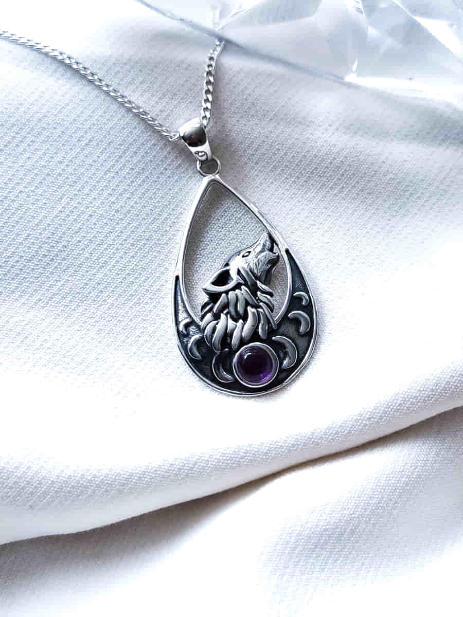 Colgante Lobo y Fases Lunares Amatista