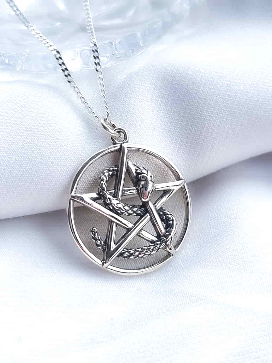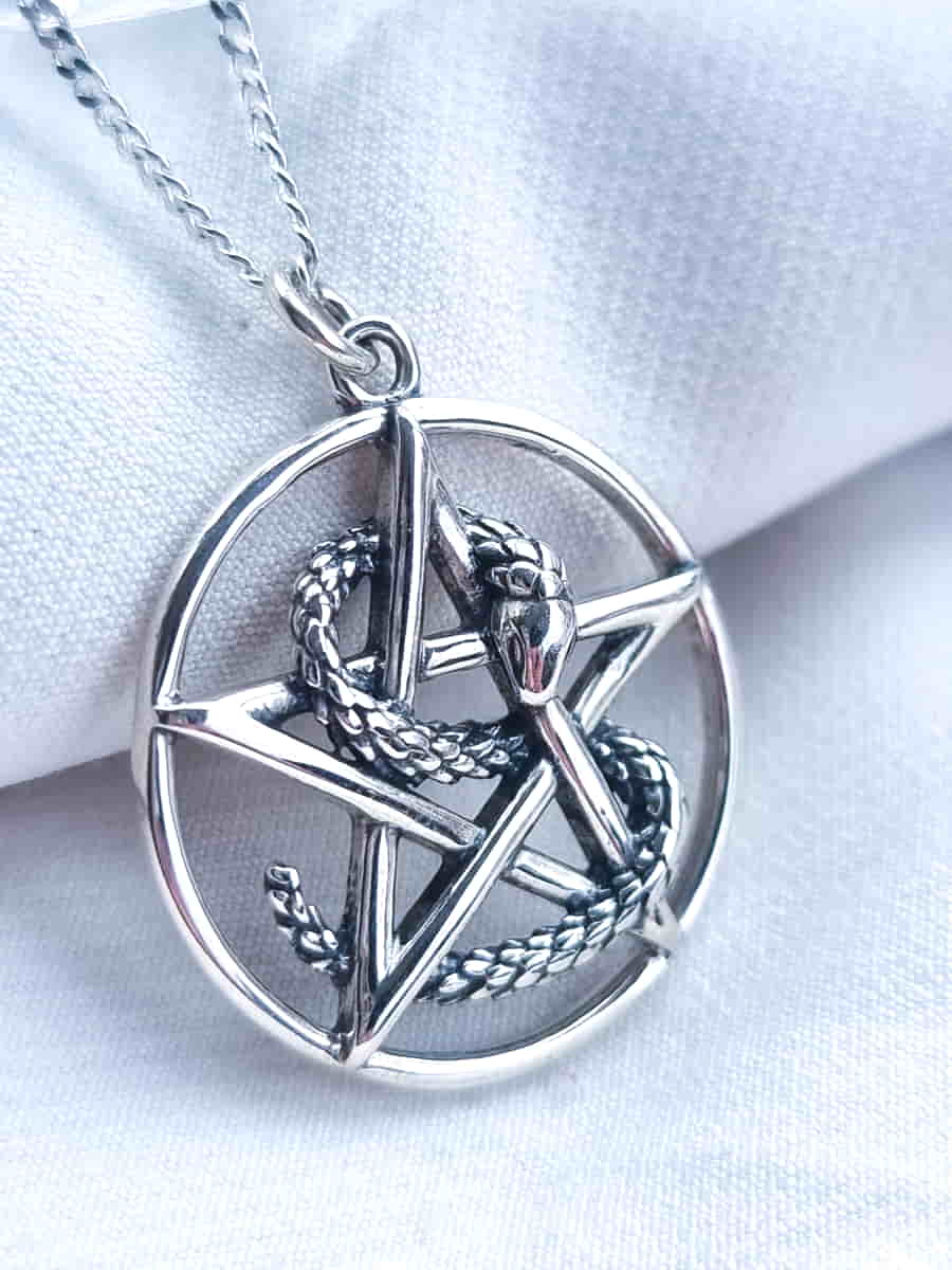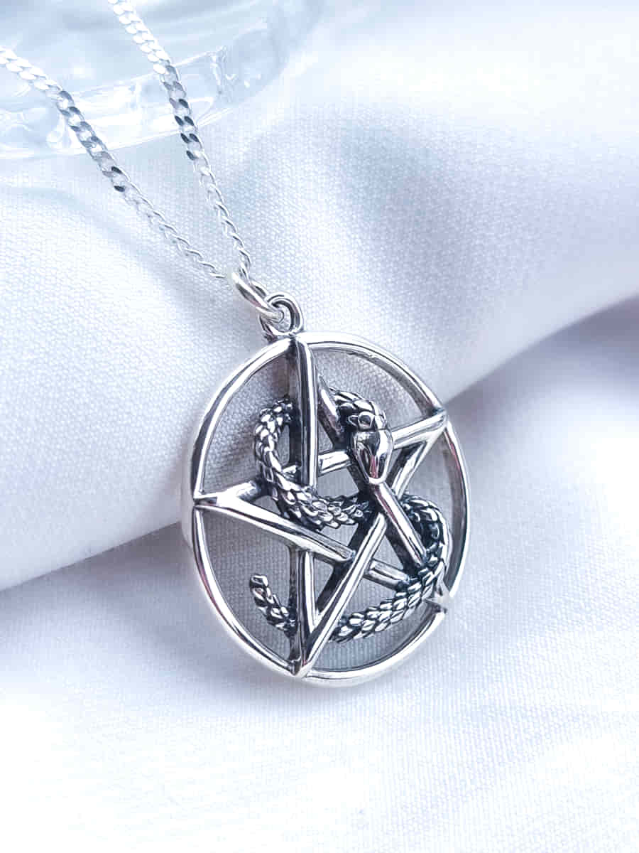 El Colgante Pentagrama con Serpiente como amuleto tiene beneficios significativos. Representa la dualidad de la vida y la sabiduría oculta. Usarlo proporciona protección contra energías negativas y fortalece la intuición. Además, simboliza la renovación y la transformación personal, fomentando la conexión con el mundo espiritual y la búsqueda de la verdad interior.
